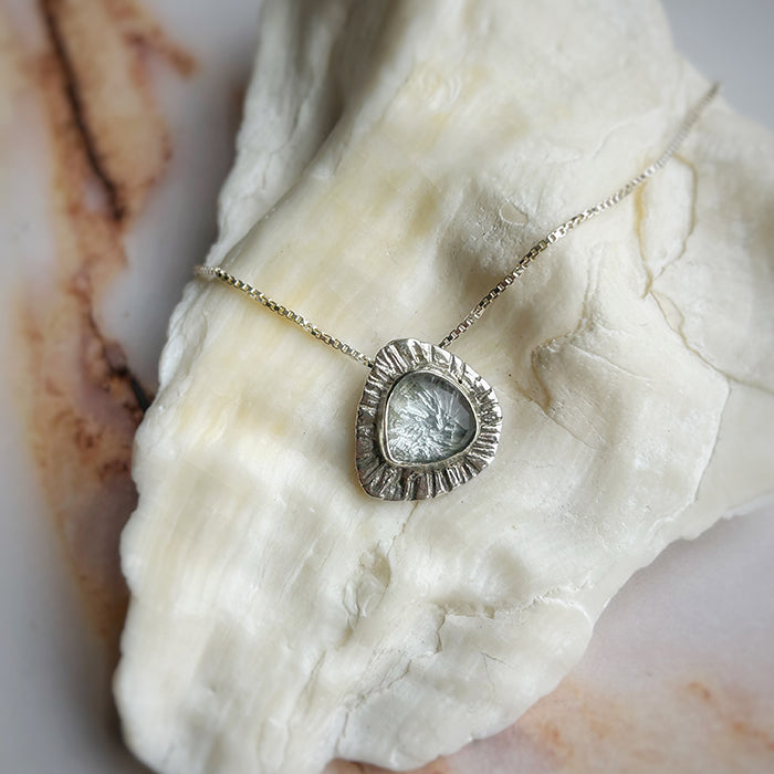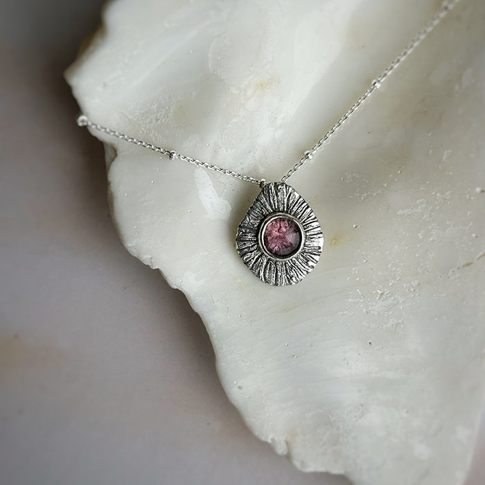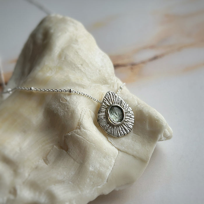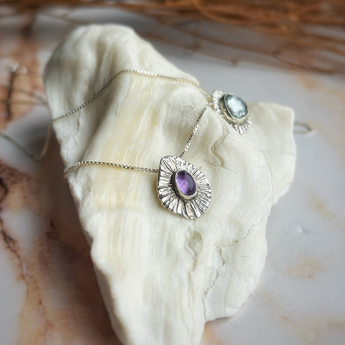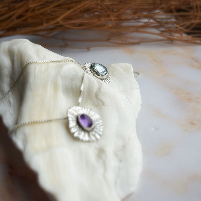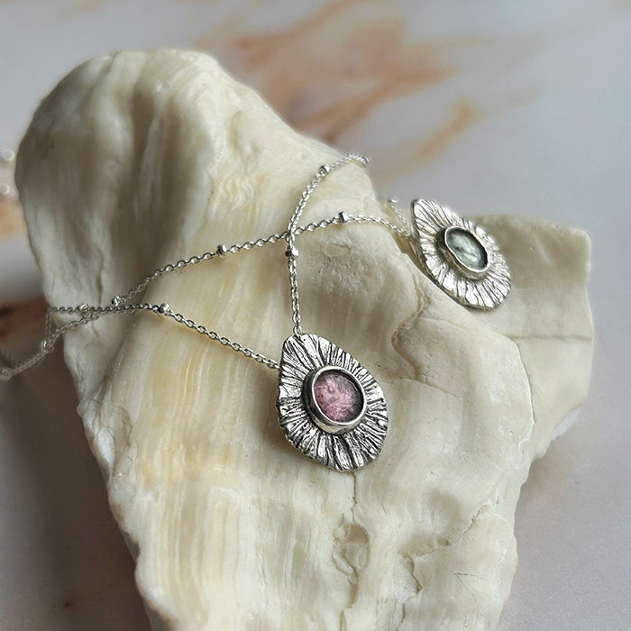 El Collar Percebes es una pieza única que combina arte y energía. Hecho a mano con plata 950, este collar incorpora una variedad de piedras naturales, cada una seleccionada por sus propiedades energéticas especiales. Entre ellas se incluyen granate, turmalina celeste y turmalina rosada, piedras conocidas por sus cualidades de sanación y equilibrio.