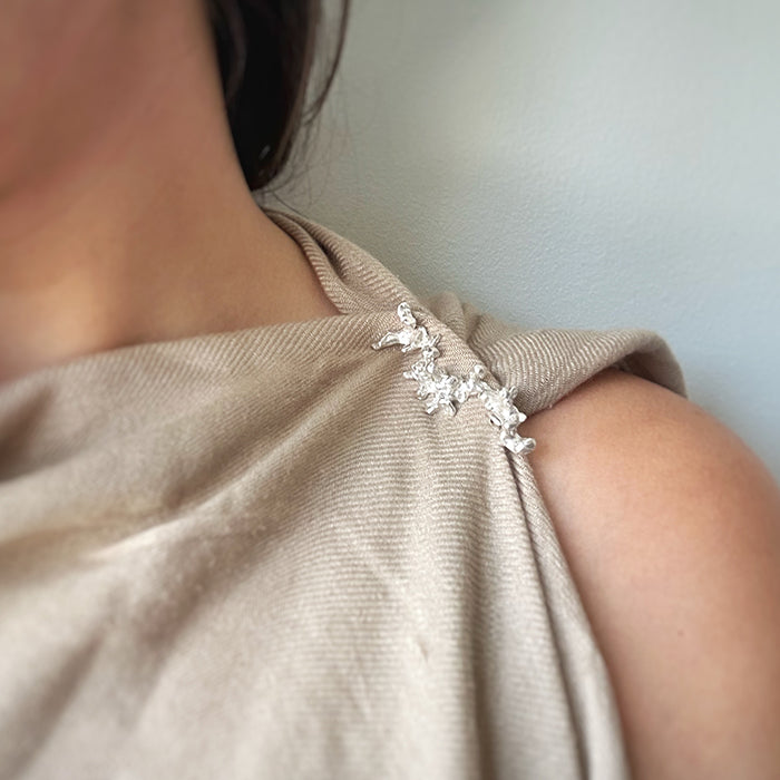 Los Prendedores Korala, Prendedor Bleach* y Prendedor Lokani de Maialen Joyas son piezas únicas diseñadas para aportar estilo y elegancia a tus looks en plata macisa 950. Con un diseño exclusivo, cada uno de estos prendedores está pensado para ser el detalle perfecto en tejidos gruesos, gracias a su peso y estructura sólida. Ideales para abrigos, suéteres o bufandas, estos prendedores destacan por su calidad artesanal y su capacidad para transformar cualquier prenda. Cada prendedor refleja la elegancia y el toque distintivo de Maialen Joyas. Aporta un toque de sofisticación a tus tejidos con estas piezas exclusivas.
