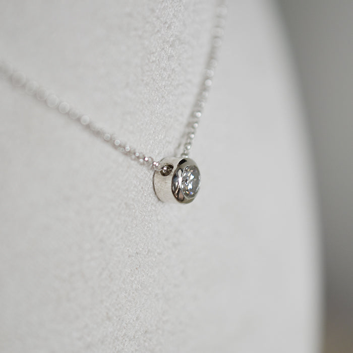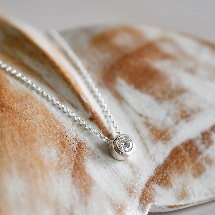 Punto luz con moissanita certificada de 5 mm. En plata.